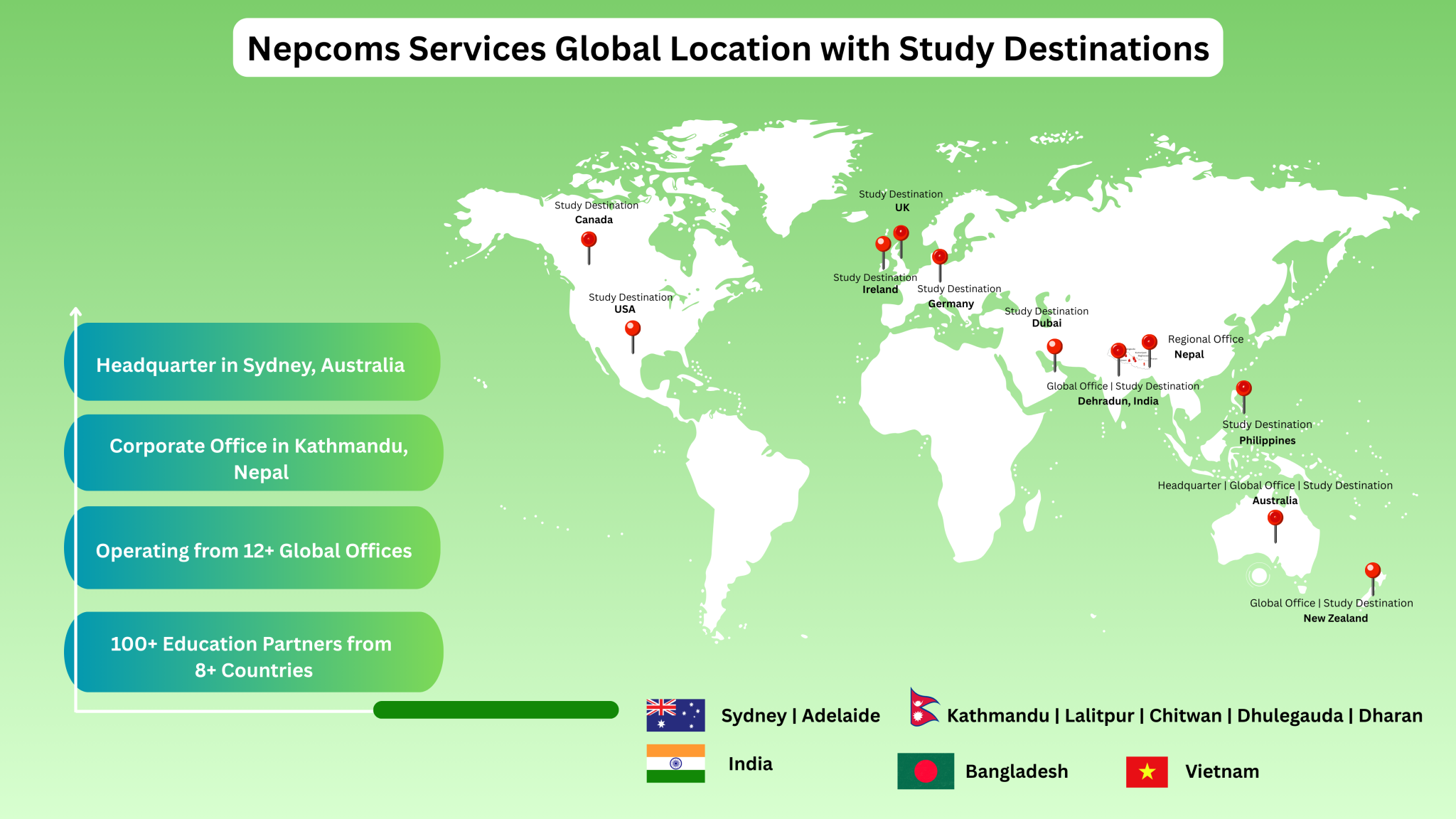 At Nepcoms Services, we provide end-to-end support for students and migrants. From choosing the right course and securing visas to test preparation and settlement guidance, our experts ensure a smooth journey every step of the way.